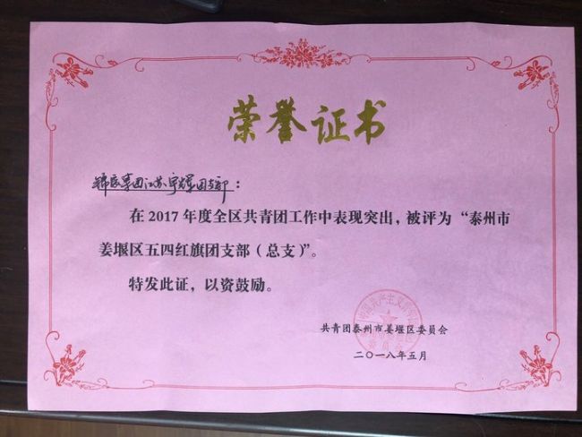 2017年以來,江蘇宇輝團委在錦宸集團江蘇宇輝黨支部的正確領(lǐng)導(dǎo)下,深入學(xué)習(xí)黨的十九大精神和習(xí)近平新時代中國特色社會主義思想,按照黨支部和上級團組織工作部署和要求,以思想建設(shè)為先導(dǎo),以組織建設(shè)為基礎(chǔ),以文化培育為載體,以品德修養(yǎng)為目標,在加強團的自身建設(shè)、拓展團的工作領(lǐng)域、創(chuàng)新團的工作機制等方面取得了新成效。榮獲“2017年度泰州市姜堰區(qū)五四紅旗團支部”殊榮。