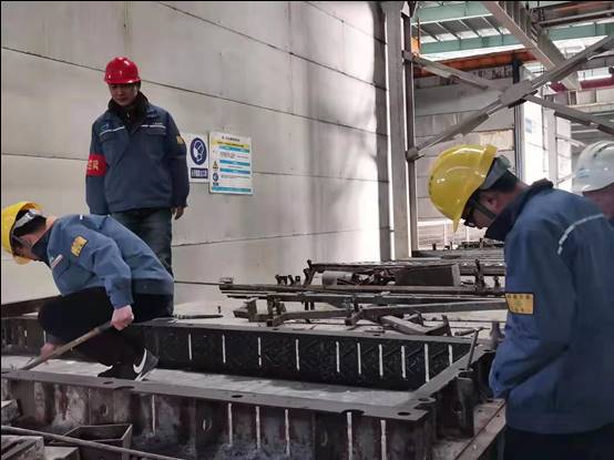 生產(chǎn)車間的安全工作也較為繁瑣,他每天堅持深入生產(chǎn)一線檢查工人的生產(chǎn)情況,作業(yè)場所是否安全可靠,以及工人的工作狀態(tài)是否正常,特別是模具的擺放是否安全。蔣萬泉說,有時工人為了省事小模具擱置在大模具上,容易造成滑落傷人,發(fā)現(xiàn)這種情況除拍照留存及時搬放平整外還要找線長或班組長說明這一行為的危害性,有時只需1分鐘或一個動作就能降低安全風(fēng)險,并要求班組加強(qiáng)針對性安全教育工作,杜絕此類現(xiàn)象的發(fā)生,同時對機(jī)械設(shè)備的運轉(zhuǎn)、吊繩、吊具等情況進(jìn)行檢查,定期安排專人進(jìn)行保養(yǎng),如繩、具達(dá)到報廢的一律予以更換為設(shè)備的正常運轉(zhuǎn)提供了有力保證。他還參與原材料進(jìn)場后的安全檢查,要求圓盤鋼筋的卸車、吊運、堆放必須要在安全可靠的前提下完成。