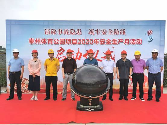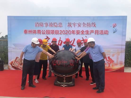 “消除事故隱患,筑牢安全防線”,6月11日上午,泰州體育公園項目舉行2020年“安全生產月”活動啟動儀式。市體育局副局長李鐵軍,市城投公司副總程小平,市安監站站長仲飛,市城投公司安全部部長袁德忠,中體泰州項目公司董事長李煥軍和項目相關負責人參加活動。