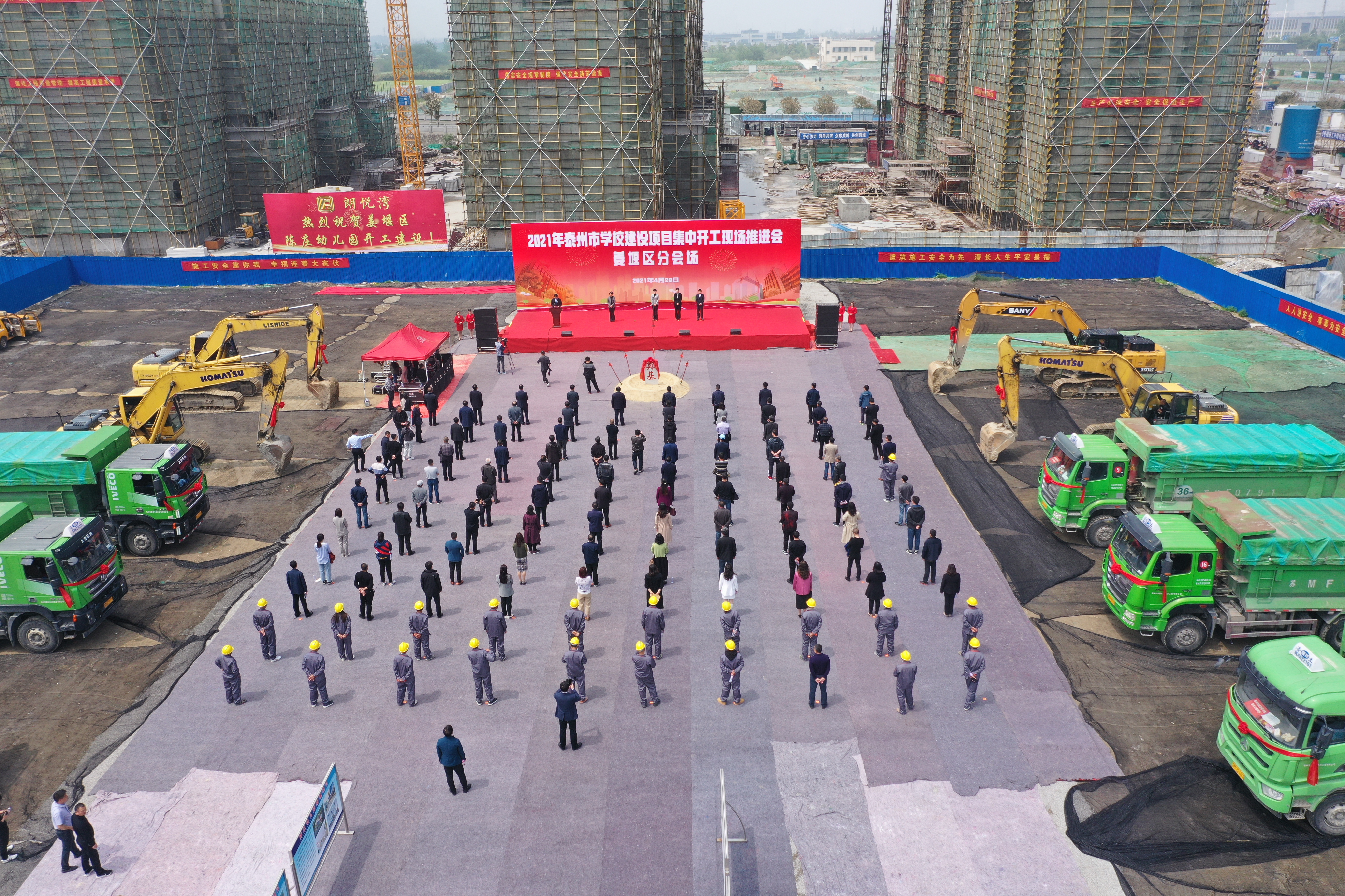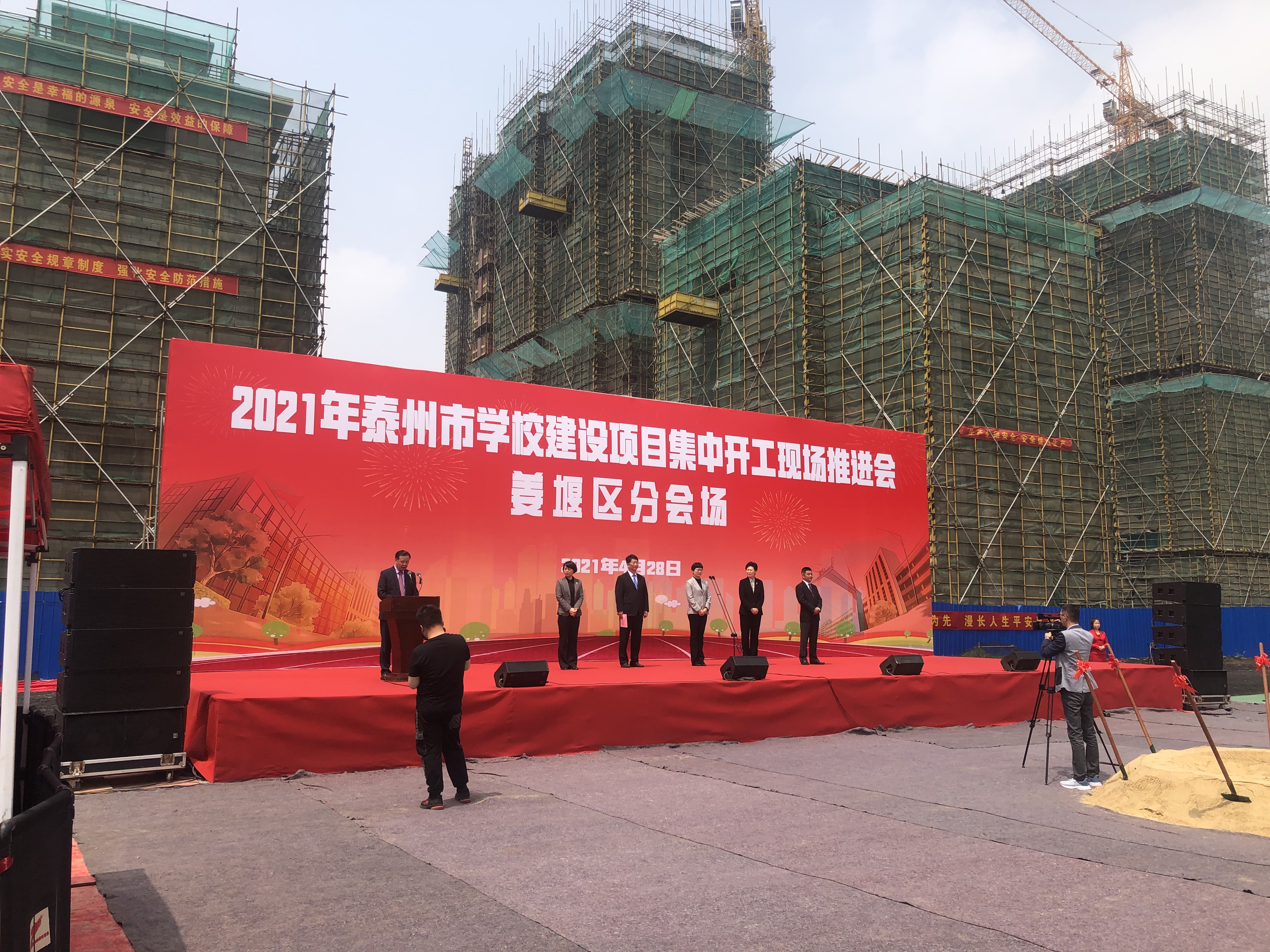 4月28日上午,2021年泰州市學校建設項目集中開工現場推進會姜堰分會場,在錦宸集團承建的陳莊幼兒園項目現場舉行,區委副書記、區長孫靚靚、區人大常委會主任錢娟、區委常委、常務副區長錢軍、副區長鄭長進、區政協副主席夏彩霞等相關部門領導參加活動,并為項目培土奠基,集團公司董事長李煥軍在開工儀式上作表態發言。