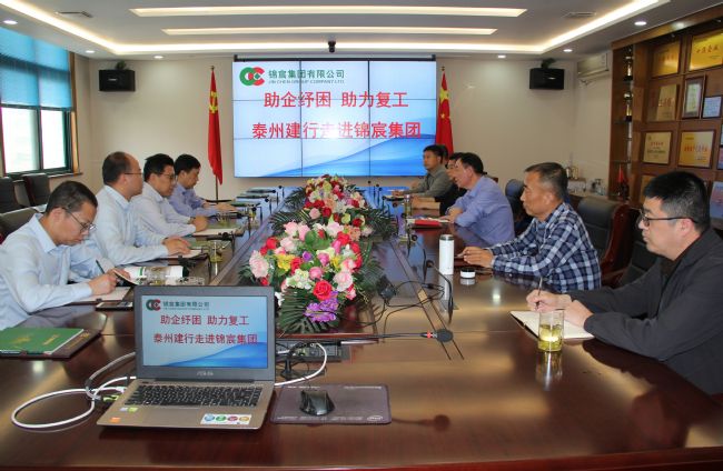 4月27日下午,中國建設銀行泰州分行副行長劉漢文、公司部副總朱光才,姜堰支行行長鄒旸、副行長張陵才一行至集團公司調研,深入了解企業受疫情影響情況和金融服務需求情況。