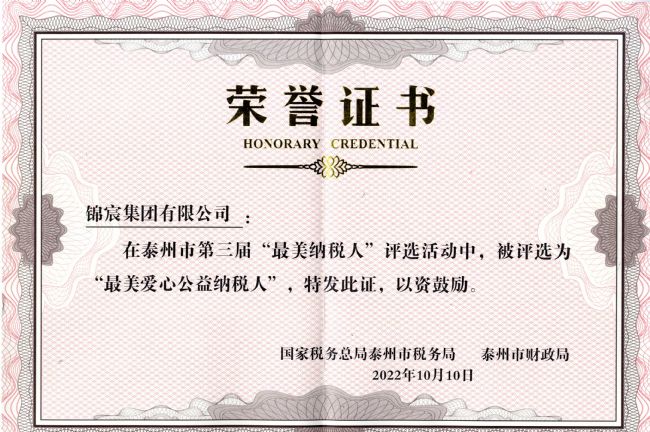經推薦申報、審核初選、公眾投票、專家評審和媒體公示等嚴格程序,此次活動共評選出30名“最美納稅人”,分別授予“最美來泰投資納稅人”“最美愛心公益納稅人”“最美創業富民納稅人”“最美專精特新納稅人”“最美稅收貢獻納稅人”稱號。錦宸集團榮獲“最美愛心公益納稅人”稱號。
