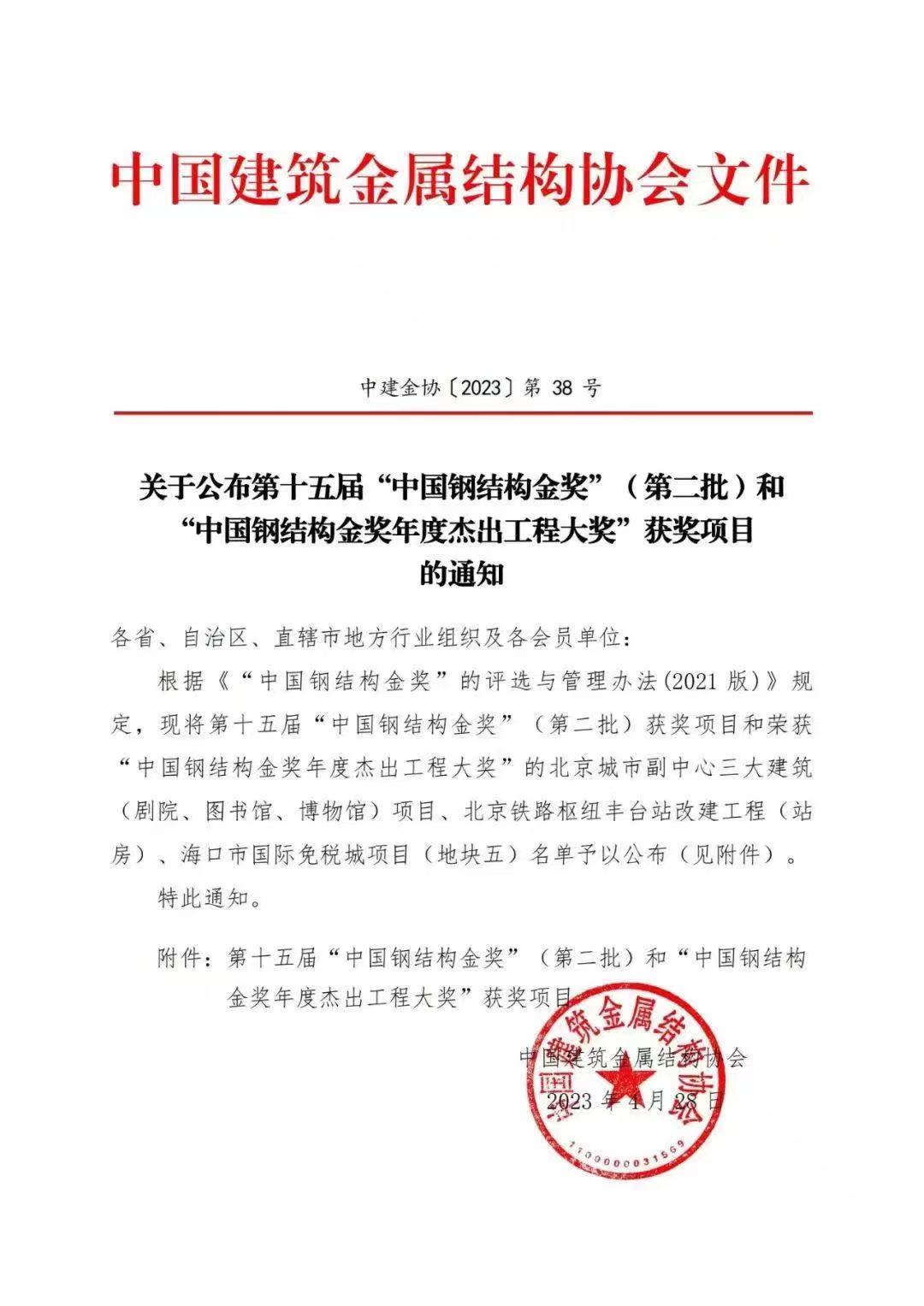據悉,中國建筑工程鋼結構金獎,是經國務院批準的建筑領域國家級的優質工程獎,是中國建筑鋼結構行業工程質量的最高榮譽,每年評選一次,評選對象是質量達到國內領先水平的各類建筑鋼結構工程。