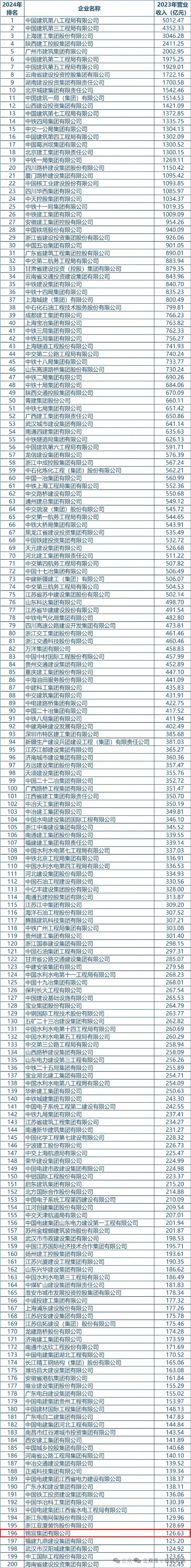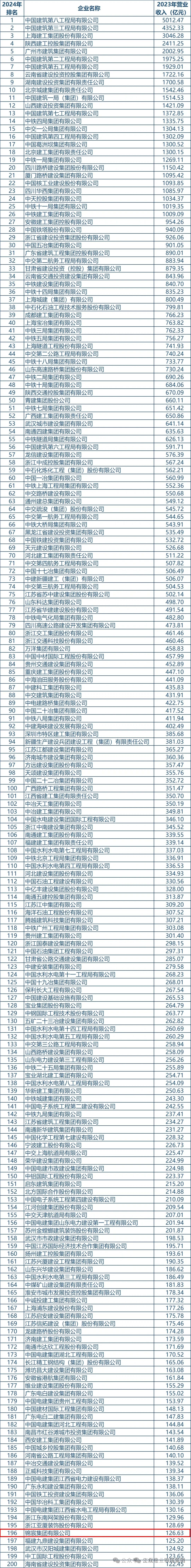 由中國建筑業協會建筑業高質量發展研究院、工程管理學報和北京中建協興國際工程咨詢公司聯合組成的建筑業大數據應用研究課題組,近日發布了2024年我國建筑業企業200強排行榜、建筑業企業盈利能力200強排行榜和建筑業企業資產總額200強排行榜。