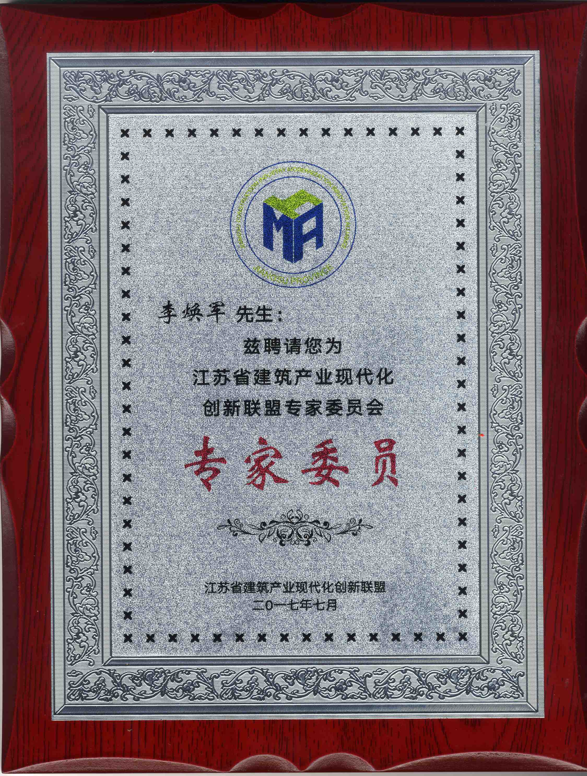 本次大會上,錦宸集團董事長李煥軍入選首批20名江蘇省建筑產業現代化創新聯盟專家委員會專家委員。