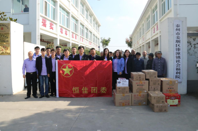 秋高氣爽,佳節(jié)重陽,在這美好的季節(jié)里,迎來了屬于老人們的節(jié)日——九九重陽節(jié),為弘揚(yáng)中華民族尊老敬老的傳統(tǒng)美德,10月28日上午,恒佳黨支部、恒佳團(tuán)委、宇輝團(tuán)委組織黨團(tuán)員代表一行走進(jìn)溱潼敬老院,看望、慰問老人。